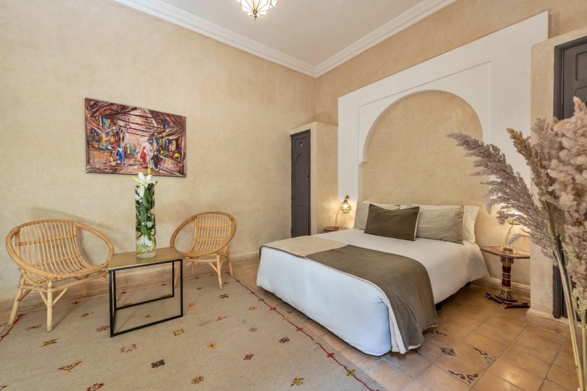 L’emplacement de notre Riad est situé à quelques minutes à pied des jardins de Majorelle qui ne manqueront pas de vous seduire. Pour rejoindre la place Jemaa El Fna il vous faudra compter 15 minutes à pied